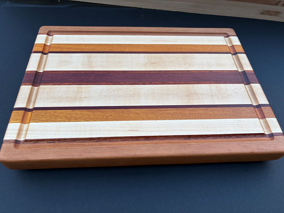 When it's time to make a statement, these boards say it all. Bold and functional, made from a combination of exotic and domestic hardwoods these large edge grain cutting boards will become centerpiece of your kitchen.